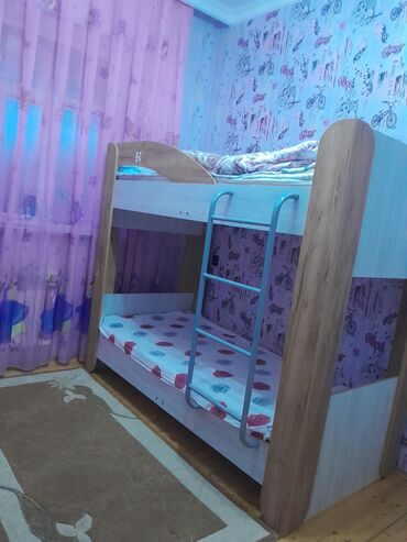 Tecili olaraq uşaq otağı üçün mebel satılır: çarpayı matras ilə, tumba, komod, yazı masası, təkərli oturacaq, kitab/oyuncaq polkası və güzgülü paltar dolabı Çarpayı, tumba, komod, masa-MADEYRAdan ...