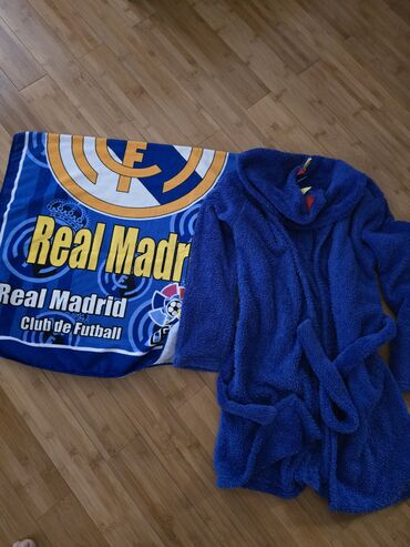 - Dəsmal: Real Madrid temalı, mavi-ağ-sarı tonlarda, böyük ölçülü plaç/deşmal kimi istifadə oluna bilər. Üzərində “Real Madrid Club de Futbol” yazıları və loqo qrafikası var.
