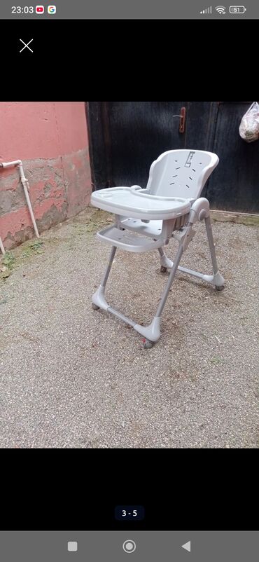 Uşaq yemək stulu - Rəng: boz çalarlar, naxışlı yumşaq oturacaq və bel dayağı - Geniş, çıxarıla bilən süfrə: əsas bölmə və fincan/qab üçün dairəvi yuva - Təkərlərlə hərəkət etdirmə imkanı (4 ədəd d...