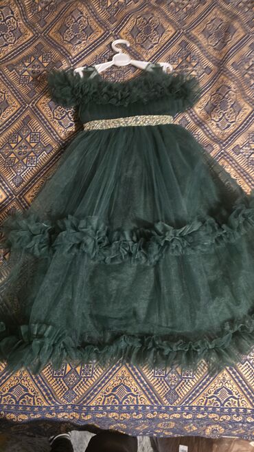Uşaq geyimi – təzədir 3-5 yaşa uyğundur. - Rəng: zeytun/yaşıl ton - Modellər: sinədə və ətəyin yan hissəsində 3D effektli çiçək naxışları və muncuq bəzəkləri - Bel hissəsində qəşəng bant/qurşaq d...