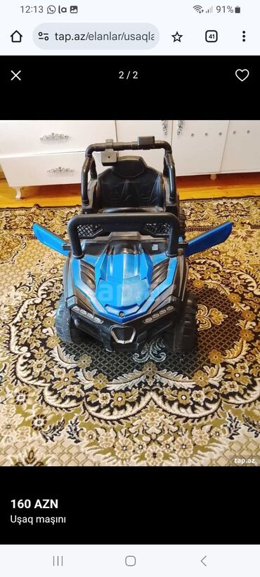 Uşaq üçün elektrikli maşın – off-road tərzində, mavi-qara korpus, iri