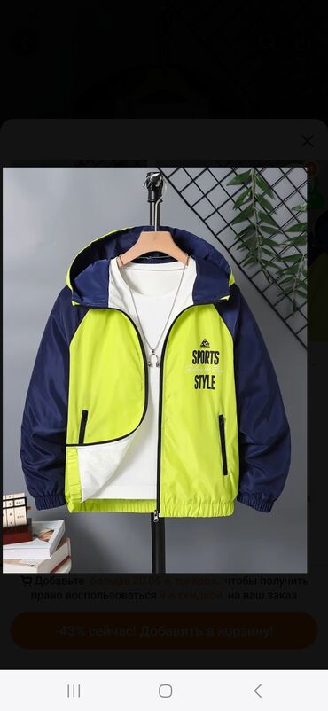 “Sports Style” uşaq/yeni yetmə küləkliki - Ölçülər: 14–15 yaş - Tam astarlı (astarli) - Rəng: neon sarı-limon yaşıl ön hissə, tünd göy qol və kapüşon, ağ iç qat detalları - Material: yüngül, nəfəs...