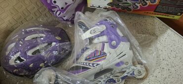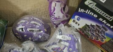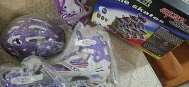Təkçə roliki istifadə olunub.Heç bir problemi deffekti yoxdur.35 razmerdən 38 kimi böyüyür . Bənövşəyi rəngdə uşaqlar üçün rolle bur skeyt dəsti, qoruyucu dəbilqə və diz/dirsək qoruyucuları daxildir. Bu dəst, uşaqların təhlükəsiz və əyləncəli şəkildə roller skeytinq öyrənməsi üçün idealdır. Skeytlər plastik qablaşdırmada, dəbilqə və qoruyucular isə ayrı-ayrı paketlərdə təqdim olunur. Skeytlərin təkərləri sıraya düzülmüşdür və müxtəlif səthlərdə rahat hərəkət etmək üçün nəzərdə tutulmuşdur.