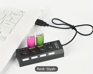 Məhsul: USB 2.0 4-portlu Hub (qaradərili korpus, “Renk: Siyah”)