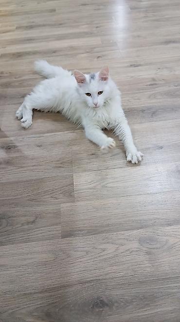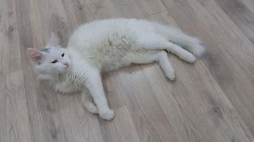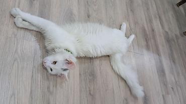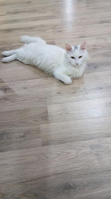 Ağ rəngli, çox təmiz və eytimli ev pişiyi. 11 aydır bizdədir, yalnız xaricə köçməyimizlə əlaqədar verilir. Xüsusiyyətlər: - Tamamilə ağ, qısa və yumşaq tüklü - Sakit, mehriban və insanlara öyrəşmi...