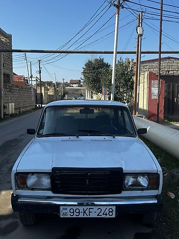 VAZ 2107, ağ rəng, sedan kuzov. 4 qapı, 5 yerlik salon. Qara radiator barmaqlığı, xrom ön-arka bamperlər. Mexaniki ötürmə qutusu (R/M/T tipik “yeddilik”də olduğu kimi). Halogen ön faralar, arxa duman/stop işıqları, yan dönmə siqnalları. Qara salon şüşələri (arka tərəfdə tündləşdirmə). Polad disklər. Yan güzgülər mexaniki tənzimlənən. Yanlarda qoruyucu moldinqlər, damda su axarlıqları. Arxa nömrə: 99-KF-248 (AZ).