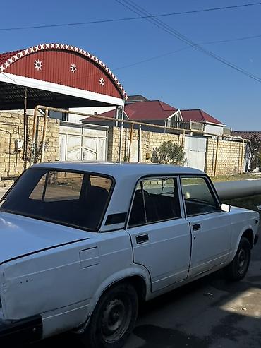 VAZ 2107, ağ rəng, sedan kuzov. 4 qapı, 5 yerlik salon. Qara radiator