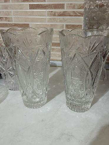 Klassik kəsimli büllur vaza dəsti 1 ededi 35 azn - Üç ədəd büllur vaza: 2 ədəd orta ölçülü, 1 ədəd hündür model - Şüşə material: ağır, qalın divarlı büllur - Dizayn: dərin əl kəsmə naxışlar, uldu...