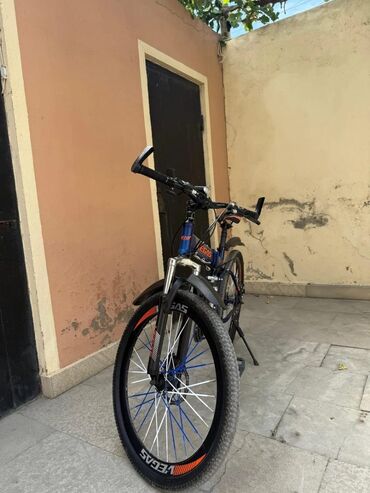 Velosiped satilir 26 liqdi hec bir problemi yoxdubela veziyetdedi sekildede gorunuyu kimi tekerlerin ikisde en yaxslarindan qoyulub kamerleri tezedi tormuzlari islekdi arxa skorusu islekdi bir orta...
