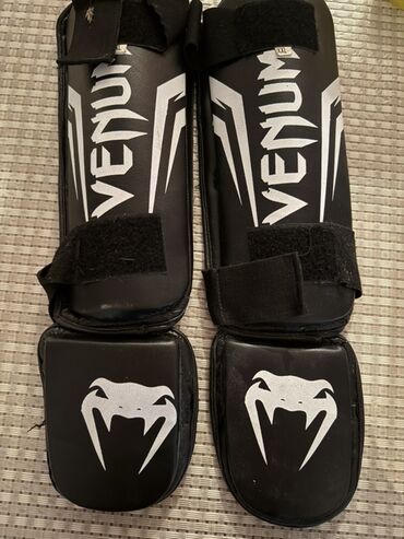 • Şin qoruqçuları (ayaq baldır və pəncə üçün). Üstündə “Venum” loqosu, geniş yapışqan (Velcro) bağlanma. Ölçü etiketində XXL görünür. Ayaq üstünə və pəncə hissəsinə ayrıca yastıqlama.