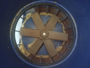 Məhsul: Dən/doğrama üçün elektrikli öğütmə aparatı (saman, qarğıdalı, arpa və s. yemlik xırdalama) - Silindrik mavi bunker və aşağıda elektrik mühərriklə fırlanan bıçaq/çaqə sistemi - İçəridə meta...
