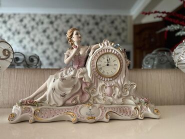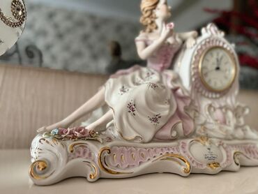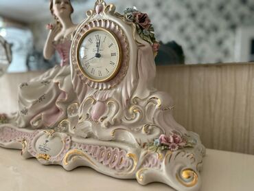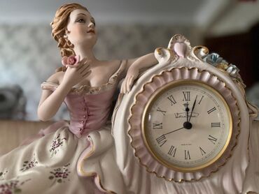 Başqa rəngAntikvar olan zərif çəhrayı, ağ və qızılı rənglərdə olan bu Viktorian fiqurlu masa saatı hər hansı bir otağa zərif bir toxunuş qatmaq üçün nəzərdə tutulmuşdur. Saatın quruluşu ağ rəngli farfordan hazırlanmışdır və üzərində oturmuş qadın fiquru, həmçinin saatın ətrafındakı zərif qızılı naxışlar və çiçək detalları ilə bəzədilmişdir. Roma rəqəmləri ilə əl ilə çəkilmiş saat üzü klassik bir görünüş təmin edir. Bu saat hər hansı bir masa, şkaf və ya kaminin üstünü bəzəmək üçün idealdır.