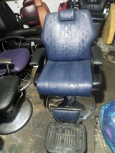 Bərbər/kosmetoloji salon üçün peşəkar kreslolar - Material: qara rəngli, hamar və təmizlənməsi asan süni dəridən oturacaq və arxalıq - Konstruksiya: möhkəm metal baza, geniş yuvarlaq diblik; sabit...