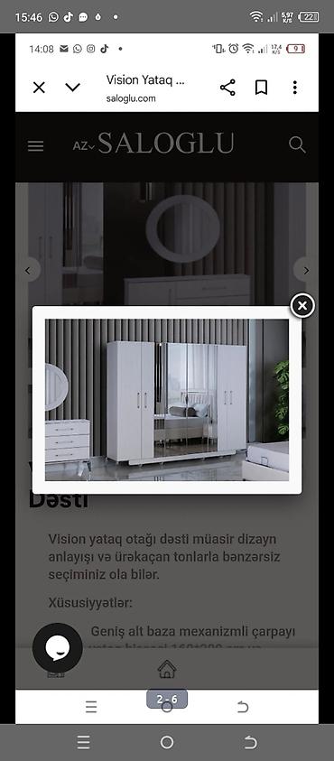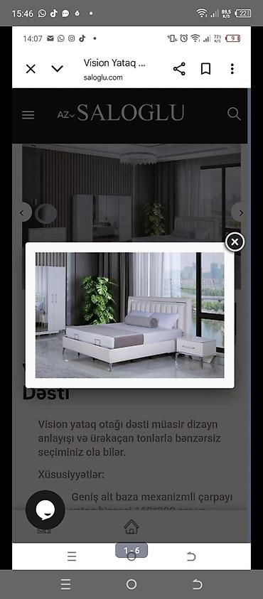 Yataq dəsti – 880 AZN Quraşdırılma bizdən 🎁 Komplekt: - İki nəfərlik çarpayı (başlıqla) - 2 ədəd tumbə - 4 qapılı şkaf (güzgülü orta hissə) - Vizaj masası və böyük güzgü - Çekmece və dolab bölmələ...