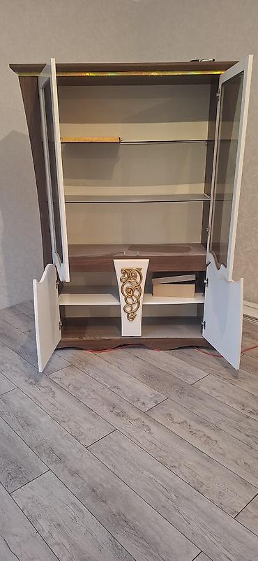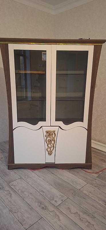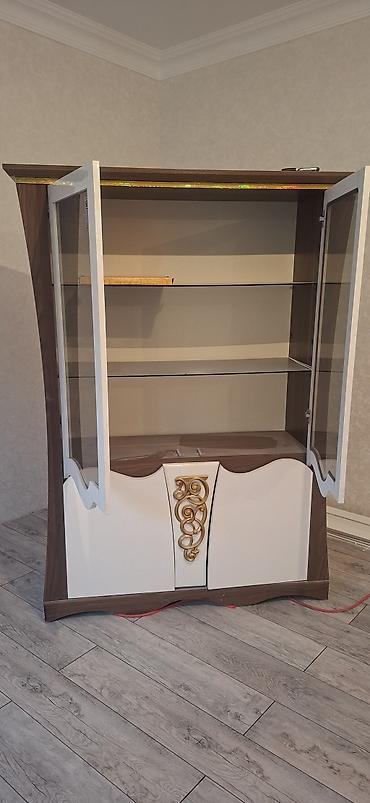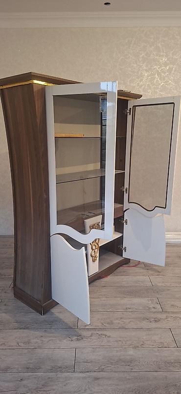 - Material: MDF/Laminate kombinasiyası, vitrin hissələri şəffaf şüşə