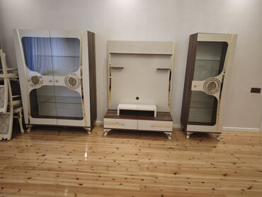 Qonaq otağı üçün vitrinli dəst və TV stendi