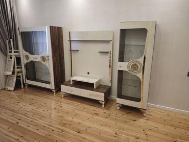 Qonaq otağı üçün vitrinli dəst və TV stendi