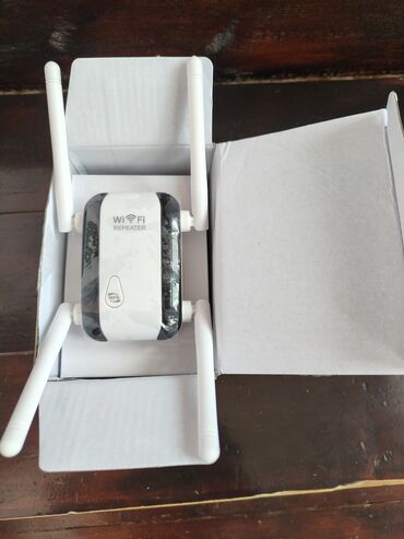 4 antenalı wi-fi dalğası genişləndirici (wi-fi repeater).İnternetin dalğası zəyif olan yerdə qoşub dalğanı genişləndirmək üçündür.Çox az istifadə edilib