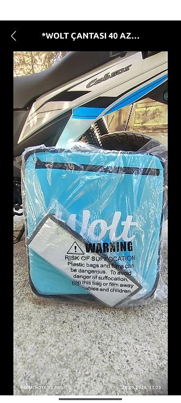 Wolt moto çantasi salafan 30azn.wolt işlenmi çanta 20azn. Elanburda