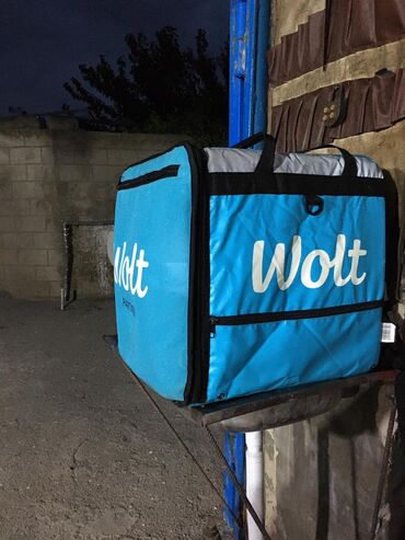 Wolt brendli yemək çatdırılma çantaları və aksesuarları 3 wolt sukasi bir 20 manatin - Rəng: mavi/qaranlıq boz detallarla - Üzərində “Wolt” loqosu - Model: kvadrat formalı termo-izolyasiyalı çatdı...