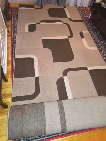 2) Bej-qəhvəyi geometric dizaynlı xalça