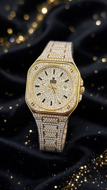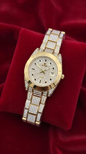 Rolex Cellini tərzində klassik kişi qol saatı - Korpus: yastı-tonneau formalı, qızılı rəngli metal korpus - Rəng variantları: şokolad-qəhvəyi və açıq mavi siferblat - Siferblat: iri ağ Roma rəqəml...