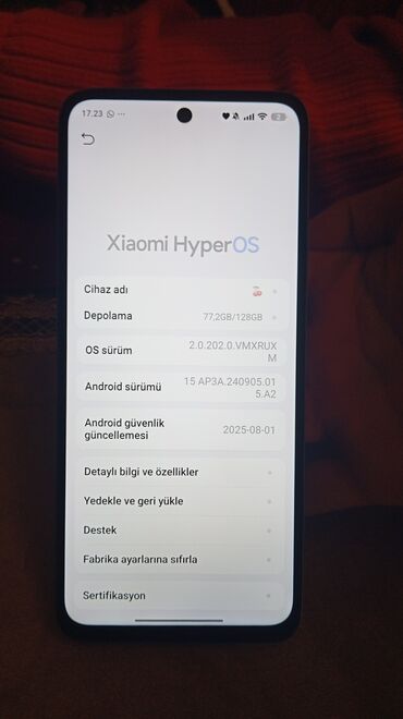 - Android versiyası: 15 (güvənlik yenilənməsi 2025-08-01)