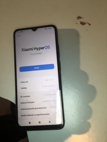 Cihaz adı sistemdə “Redmi 12C” kimi görünür. Ekran, kamera və sistem funksiyaları işlək vəziyyətdə nümayiş olunur. HyperOS və Android 14 ilə gəlir, barmaq izi oxuyucusu arxa paneldə yerləşir, 128 GB yaddaş geniş fayl və tətbiq saxlanmasına imkan verir.