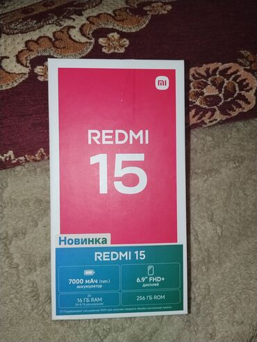 - Qutu mövcuddur, üzərində “REDMI 15” və əsas xüsusiyyətlər qeyd edilib