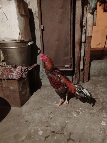 Məhsul: Qara-qırmızı rəngli döyüş tipli xoruz Təsvir: - Uzunboyun, güclü bədən quruluşu, hündür ayaqlar - Lələk rəngi: qara əsas, kürək və boyun hissəsində qırmızı-qızılı tonlar - Quyruq lələkləri...