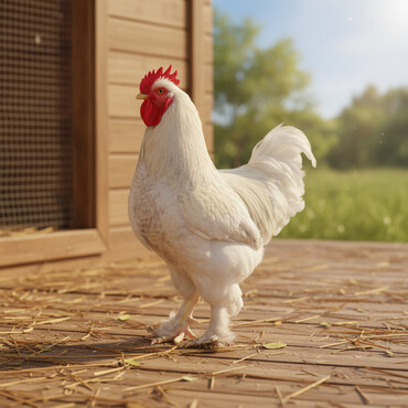 - Həyət şəraitinə uyğun, iri bədənli, ağ lələkli xoruz; qırmızı daraq və saqqal, lələklı pəncələr.