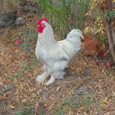 Bir ədəd Brama xoruzu 1 ilk Təsvir: - Böyük cüssəli, ağ rəngdə, qırmızı dimdiküstü daraqlı xoruz. Ayaqları lələkli, quyruğu dolğun, aktiv və sürünü yaxşı toparlayan tipdədir. - Bir neçə fərqli rən...
