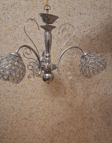 - Abajurlar: dairəvi formalı, şəffaf şüşə kristallarla bəzədilmiş metal tor abajur