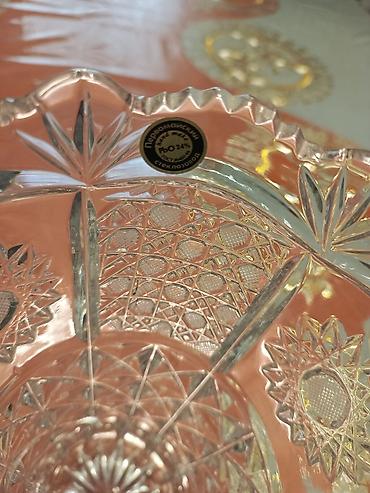 Kəsilmiş kristal vaza - Material: yüksək keyfiyyətli kəsilmiş kristal şüşə - Dizayn: əl işinə bənzər dərin oyma naxışlar, ulduz və romb ornamentləri; işığı gözəl şəkildə sındıraraq parıltı yaradır...