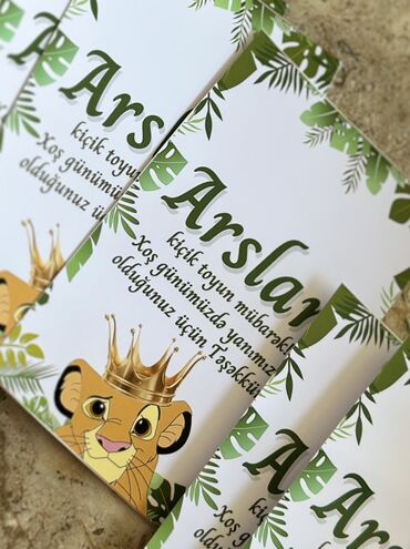 - Uşaq temalı “jungle/şir” dizaynında təşəkkür kartları