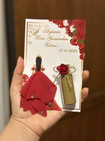 - Xına gecəsi xatirə kartı qırmızı dekorla