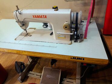 Sənaye tikiş maşını – YAMATA düz tikiş - Brend/model: YAMATA (sənaye tipli düz tikiş maşını) - Komplektasiya: metall gövdə, inteqrə iş masası və ayaq pedalı, ikili iplik dayağı (çoxlu sap çarxı üç...