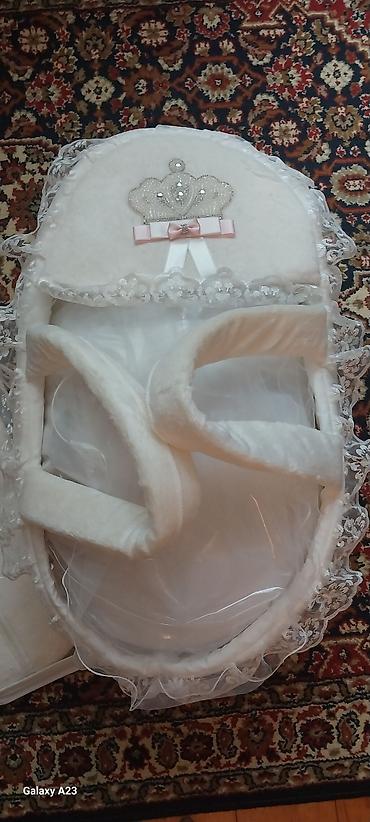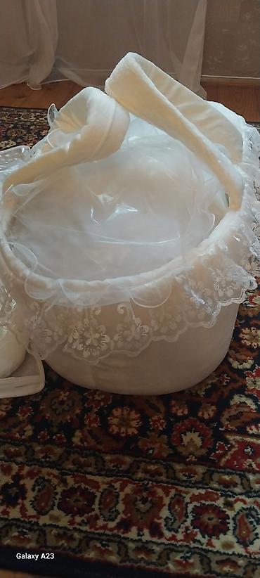 Uşaq daşıma beşiyi – krujeva və naxışlı atlas materialdan, krem/ağ rəngdə. Xüsusiyyətlər: - Sökülüb-taxılan qapaqlı (fermualı) konstruksiya: üst örtü tam bağlanır, istəyə görə ön hissə açılır. - Q...