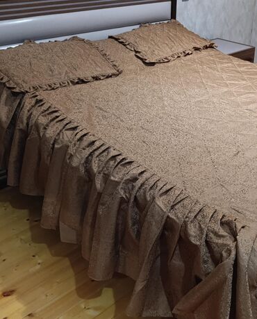 - Komplekt: yataq örtüyü + 2 yastıq üzlüyü (büzgülü haşiyə ilə)