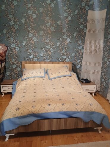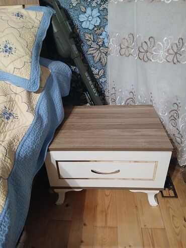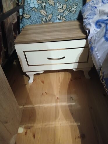 Mebel dəsti – çarpayı və tumba - Çarpayı: Açıq krem rəngli korpus, yumşaq qəhvəyi yastıqlı başlıq paneli. Minimalist xətalar, möhkəm karkas. - Matras: Üzəri qoruyucu plyonka ilə, dəstlə birlikdə h...