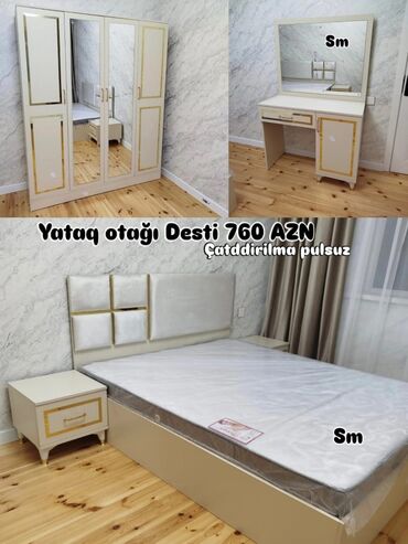 Yataq otağı dəsti – Hazır Fabrik istehsalı Dəst tərkibi: - Çarpayı (müasir başlıqla) - 2 ədəd tumba - Paltar şkafı (güzgülü) - Komod və güzgü Rəng variantları: ağ, qara, ağ/qəhvəyi və bej/qəhvəyi...