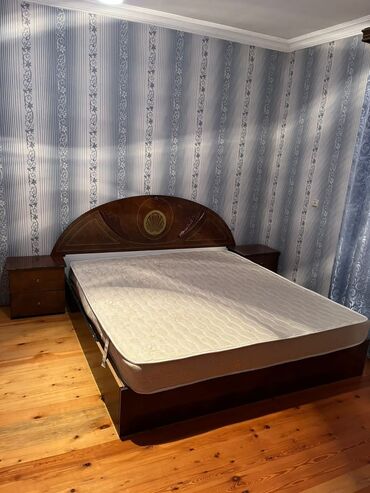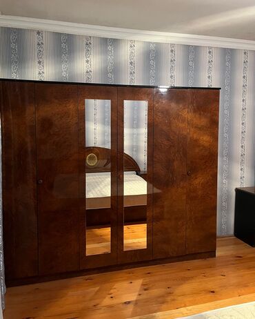 Yataq otağı və qonaq otağı üçün mebel dəsti Tərkibi: - İki nəfərlik taxta çarpayı (taxta başlıq və ayaqlıq, möhkəm karkas,) - 4 qapılı iri paltar dolabı: mərkəzdə asqılı bölmə, yanlarda rəfli his...