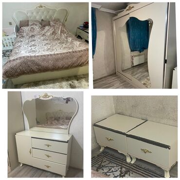 - Dizayn detalları: zərif oyma ayaqlar, sümük-krem korpus, qızılı ornament başlıq və güzgü üstündə, eyni üslubda tutacaqlar; bütün elementlər bir-biri ilə uyğun komplekt kimi.