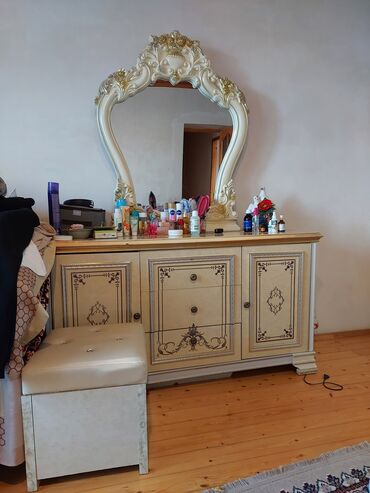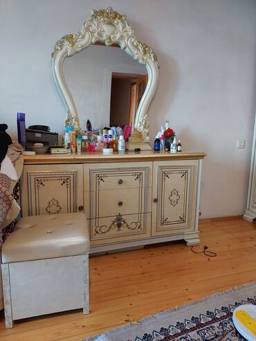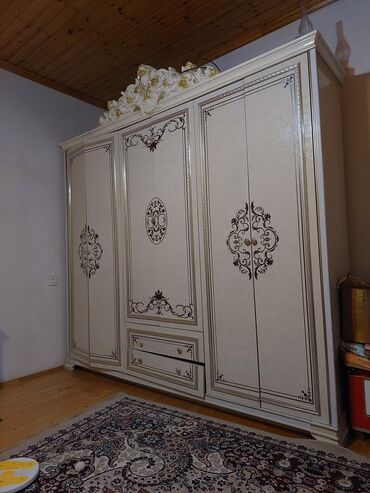 Müasir dizaynlı yataq otağı mebel dəsti Tərkib: - Geniş çarpayı: yumşaq panel başlıq, ağ-beton teksturalı və ağ korpus, taxta dekor elementləri. - 3 qapılı qarderob: mərkəzdə tam boy güzgü panellə...