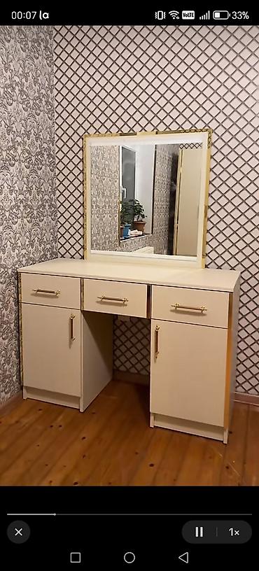 2) Tualet masası (pudra masası) – böyük kvadrat güzgü ilə: