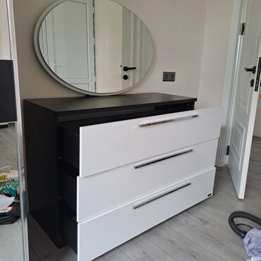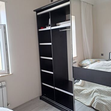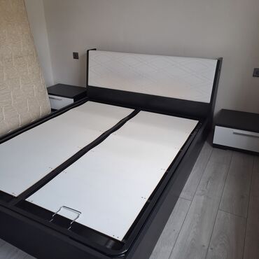 Yataq otağı dəstləri Model 1 – Kartanesi yataq dəsti - Müasir minimal dizayn: ağ korpus, qara detallı başlıq - Sürgülü qapılı şkaf (biri güzgülü panel) - Çarpayı bazalı - Tumba və üç çekmecəli ter...