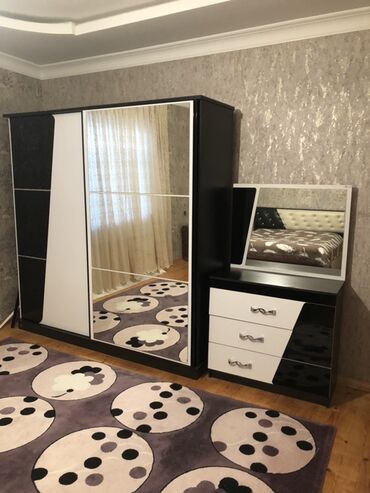 - Tualet/komod: 3 çekmecəli, üst hissədə güzgü; qara-ağ kombinasiya, metal tutacaqlar.