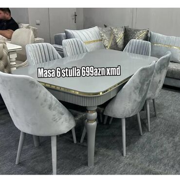 - Komplekt: 1 ədəd yemək masası + 6 ədəd stul
