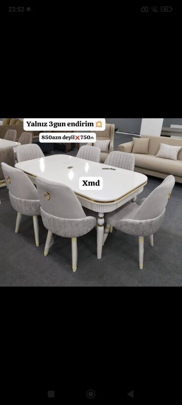 Qonaq otağı üçün, Yeni, Açılan, Dördbucaq masa, 6 stul