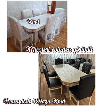 Şəkildə göstərilən mətnə əsasən qiymət: 429 AZN (masa 6 stul ilə, “xmd” qeydli).